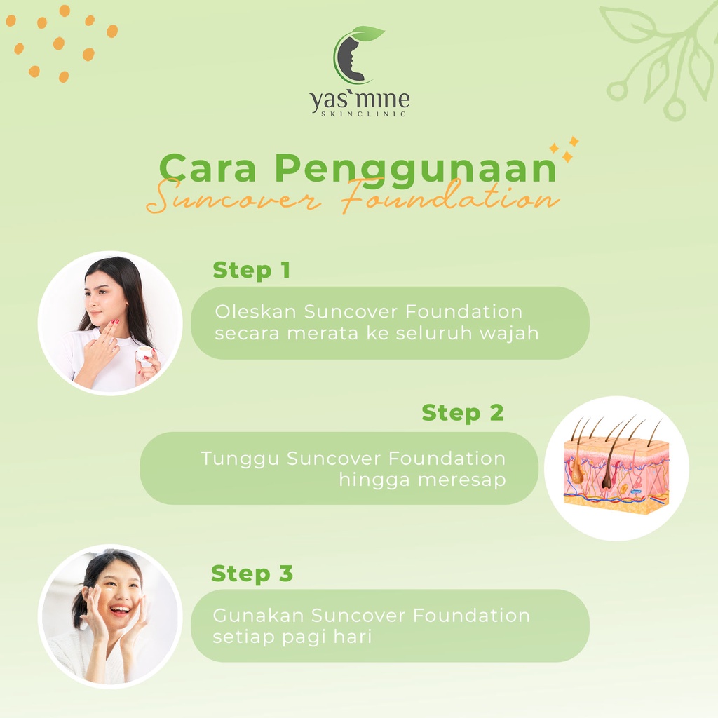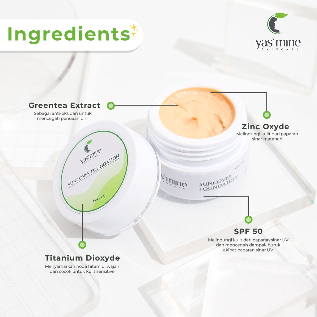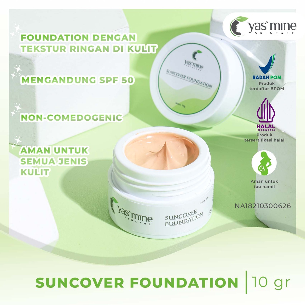 Cream alas bedak / Foundation dengan SPF 50, mengandung formulasi khusus untuk melindungi kulit dari efek buruk sinar matahari dan menyamarkan noda hitam di wajah.